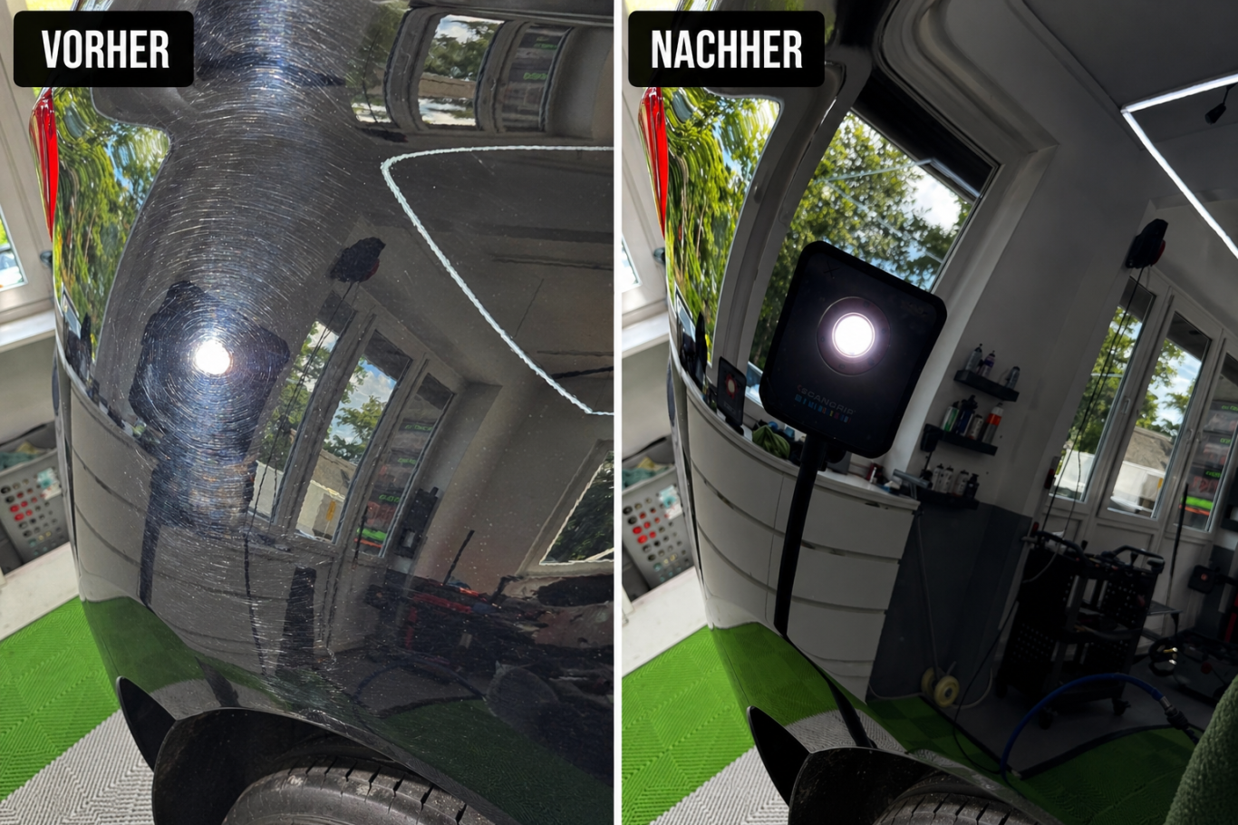 Von der einfachen Leasing- oder Verkaufsaufbereitung bis hin zur dreistufigen Lackdefektkorrektur mit Keramikversiegelung ist alles möglich.